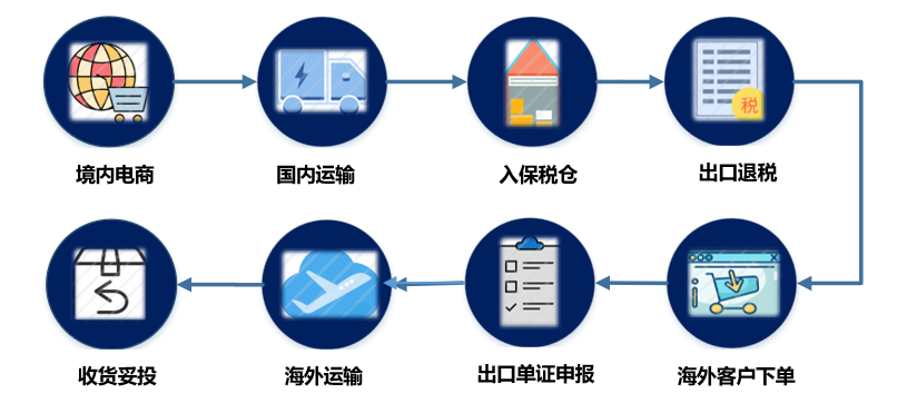 先入区退税,再根据订单包装,区内申报,再国际运输,运抵前境外申报,转当地国落地配。